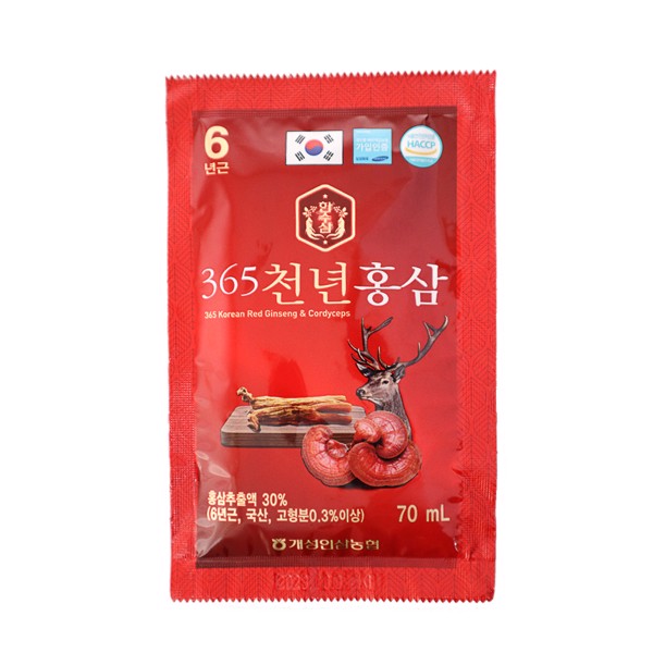 Nước hồng sâm nhung hươu linh chi 365 Hansusam có thành phần chủ yếu chiết xuất hỗn hợp thực vật (nước, táo đỏ, rễ cây galbi, ngải cứu, rễ cây thiên cung, rễ cây bạch chỉ, linh chi, sơn thù du, địa hoàng, rừng quế, cam thảo) chiết xuất hồng sâm 30%, đường hoa quả, chiết xuất nhung hươu (nước, nhung hươu), đường chế biến. Thành phần hồng sâm lên đến 30% dinh dưỡng cao giúp tăng cường sức đề kháng. Đồng thời, sản phẩm giúp điều hòa huyết áp, cải thiện rối loạn tuần hoàn, chống hình thành huyết khối, ngăn xơ vữa động mạch, hỗ trợ và ngăn ngừa đột quỵ.