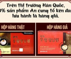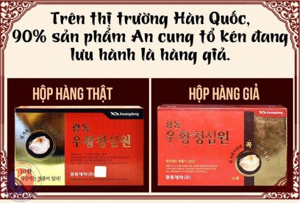 An cung ngưu hoàng hoàn hộp màu đỏ của hãng dược phẩm Kwang Dong đã được Bộ Y tế Hàn Quốc công nhận là một loại thuốc. Ở các nước phát triển nói chung và Hàn Quốc nói riêng, để một sản phẩm dược phẩm được công nhận là thuốc thì nó phải trải qua quá trình kiểm tra và thử nghiệm trên động vật, rồi qua các thử nghiệm trên người cẩn thận và lâu dài. Trên từng hộp thuốc chỉ được in những công dụng của thuốc đã được cơ quan chuyên môn kiểm tra và công nhận trước đó.