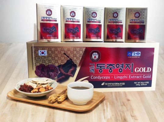 Cao Linh Chi Đông Trùng Hạ Thảo POCHEON Hàn Quốc hộp 5 lọ * 50g (Cordyceps-Lingzhi Extract Gold)