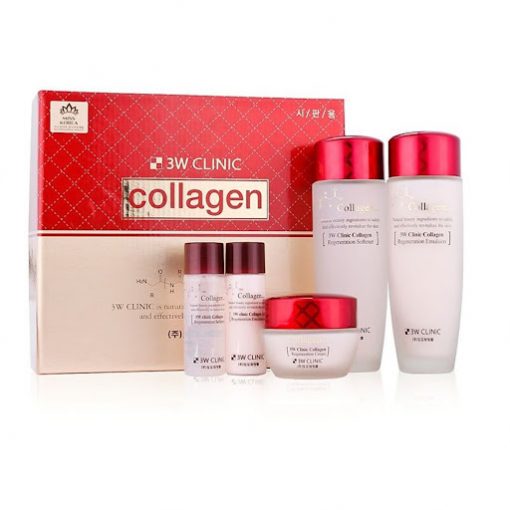 Bộ kem dưỡng da 3W Clinic Collagen gồm 5 sản phẩm chăm sóc da chuyên sâu. Sản phẩm hoàn toàn được chiết xuất từ các thành phần tự nhiên. Giúp thổi bùng sức sống cho làn da, dưỡng da hiệu quả và an toàn