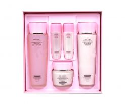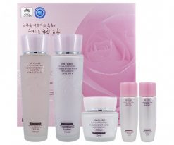 Chứa Arbutin, Collagen Hydrorized, Acid Hyaluronic, Tocopherol, chiết xuất từ các loài hoa,…đây đều là các thành phần lành tính cho da. Bộ sản phẩm giúp làm trắng và giảm thâm nám, Hyaluronic acid – giữ ẩm và ngăn ngừa nếp nhăn, Collagen – cho làn da có năng lượng tràn sức sống, ngăn ngừa kích ứng da.