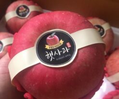 Táo Hàn nhập khẩu Hàn Quốc hộp 1kg (5 – 16 trái) có vỏ màu hồng cam đẹp mắt, thịt ngọt sắc, độ giòn cao.